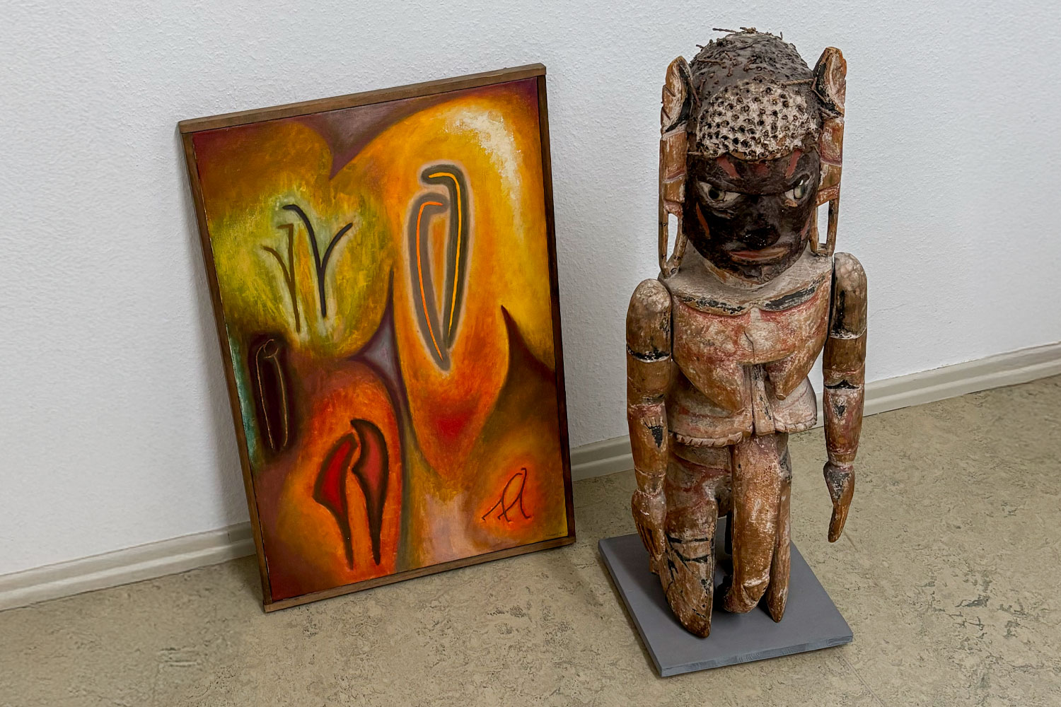 Arbeiten aus der frühesten Schaffenszeit, Klappbilder, Verlaufsbilder und schließlich, das größte Konvolut, die Spanplattenbilder: das ganze malerische Werk von Raimer Jochims wird neu verpackt und geordnet. Professionell gesichert mit feiner Tyvek-Rolle und abgepuffert mit Luftpolsterfolie, warten die Arbeiten jetzt auf den Transport an die designierte Lagerstätte.